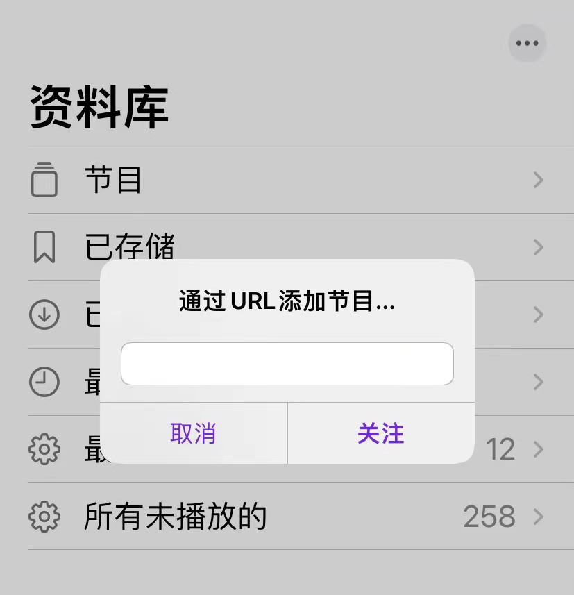 进入“资料库”,点击右上方 ···,选择“通过 URL 添加节目…”